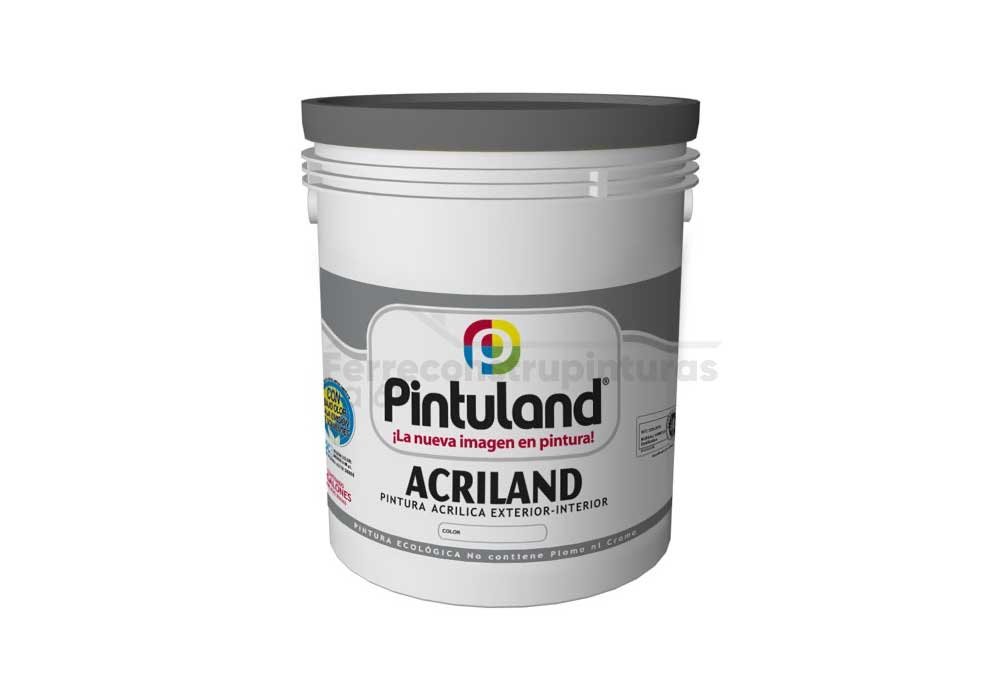 Pintura para fachadas y paredes exteriores Acriland de Pintuland, 100% acrílica. Es resistente a hongos, algas y las inclemencias del tiempo: sol, lluvia, polvo y suciedades. Colores resistentes y duraderos, buena adherencia en superficies alcalinas. Recomendado para muros, paredes y superficies de cemento, concreto, yeso. Patios, terrazas, ladrillo sin esmaltar y láminas de fibrocemento. Vinilo diluible en agua con bajo olor, bajo VOC.