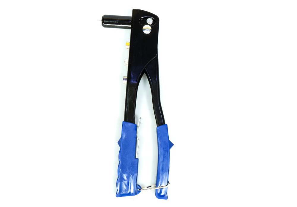 Remachadora fabricada en metal, mango revestido en PVC, acabado en negro lacado. Dimensiones 10’’.