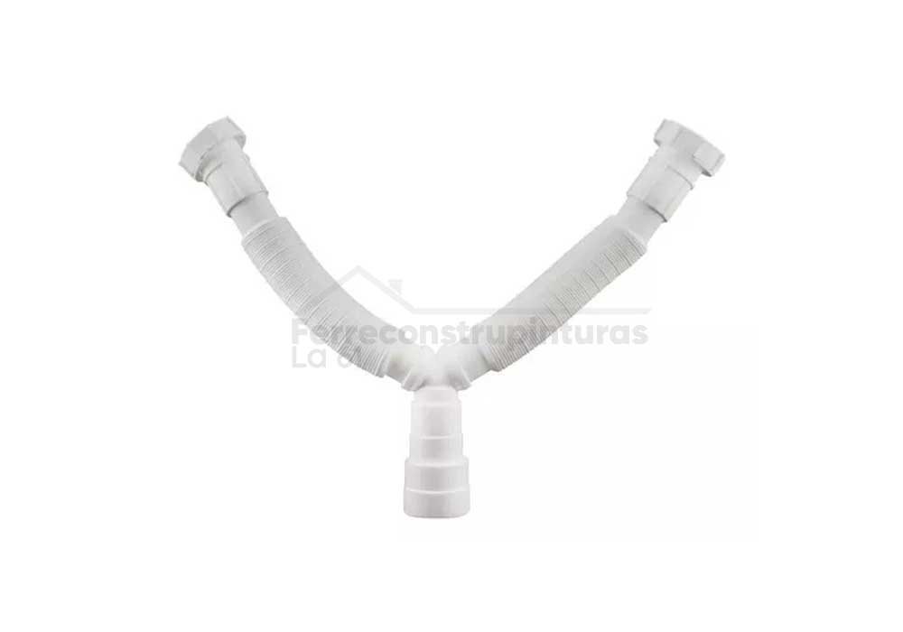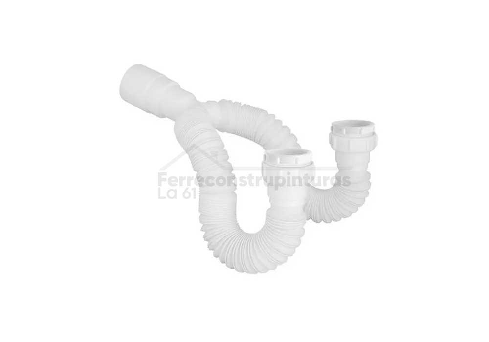 SIFÓN FLEXIBLE DOBLE BLANCO PARA LAVAMANOS, LAVAPLATOS O LAVADERO