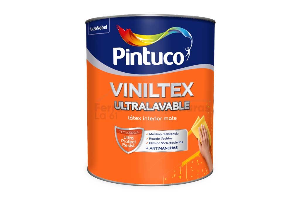 Es una pintura de acabado mate, de máxima resistencia y ultra lavabilidad. Diseñada con la Tecnología Ultra Protect Resist que le brinda una protección excepcional contra las manchas, gracias a su fórmula avanzada que repele líquidos y evita la adherencia de la suciedad, permite limpiar más fácilmente las superficies, manteniendo tus paredes como nuevas por más tiempo. Además, elimina el 99% de las bacterias conservando tu hogar más protegido.